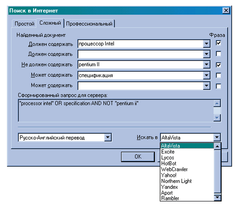 Есть три варианта поиска: Стандартный, Сложный и Профессиональный.