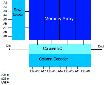 как и в SRAM, есть схемы адресной логики, чтения и записи, могут